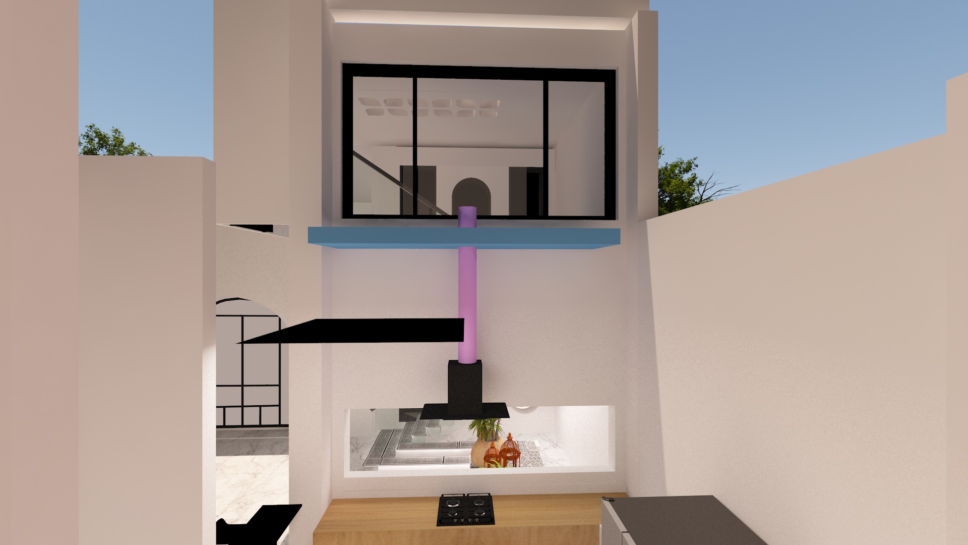 Breaking the stereotypes of conventional 2BHK layouts, the house is anchored by a central passage, which becomes the soul of the design. Inspired by the vibrant streets of Japan and Delhi, this passage transforms into a whimsical yet functional corridor—full of light, movement, and experience.​