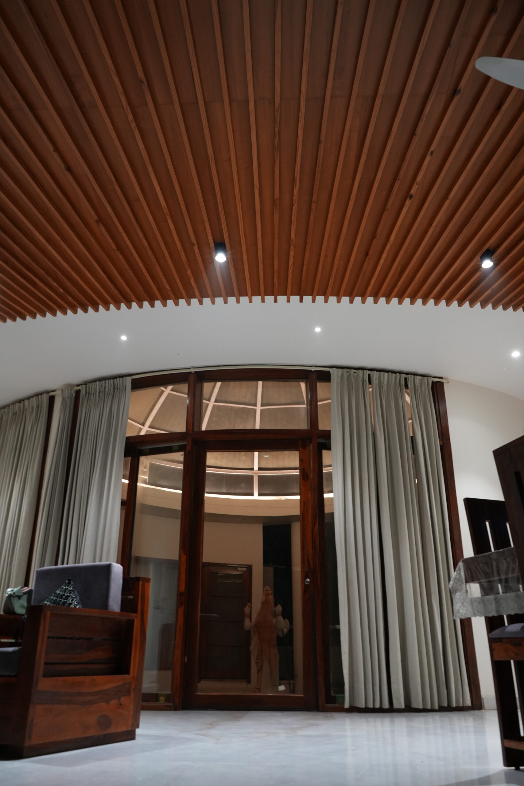 When asked what kind of roof should crown this space, the answer didn’t come from drawings or designs, but from within. In just two days, all four of us—clients and design team—received the same inner vision. That shared intuition gave birth to the gracefully cast dome, a symbol of unity, peace, and spiritual geometry.​