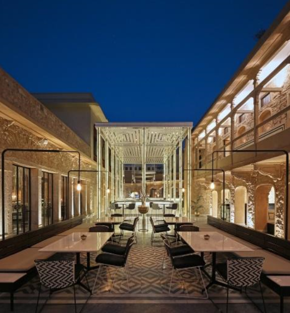Here’s the transformed view of courtyard of palace into café.