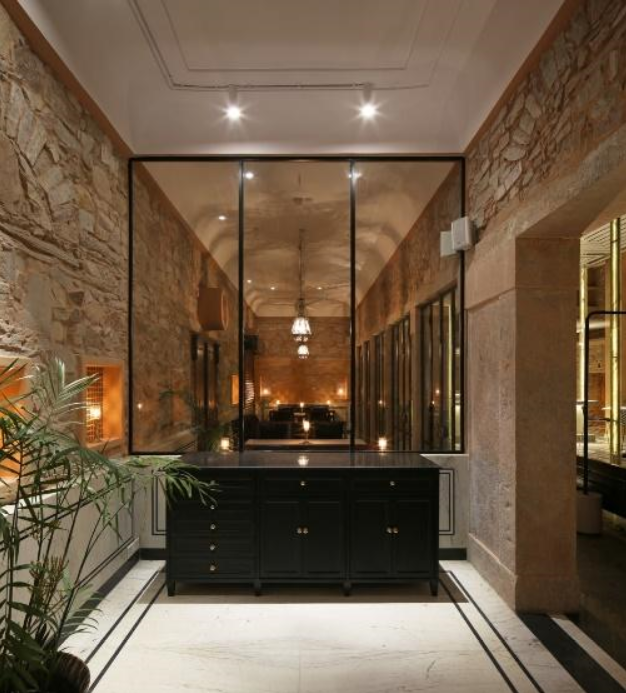 The old interior is not demolished and it is reused as a backdrop for new space of contemporary times. This showcases the smart use of recycling and the reduction of construction waste.