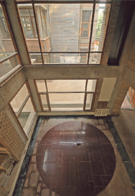 The ventilating technique used reduces the use of air conditioning and creating cool passive air. Windows facing east and west are kept shaded by sunscreen or by building volume itself. This eliminates the brunt of the morning and afternoon sun. Windows are meticulously designed with three different layers hence, they filter the daylight. The greenery around the building envelope makes the air fresh and keeps the interior environment cool reducing the active cooling load.